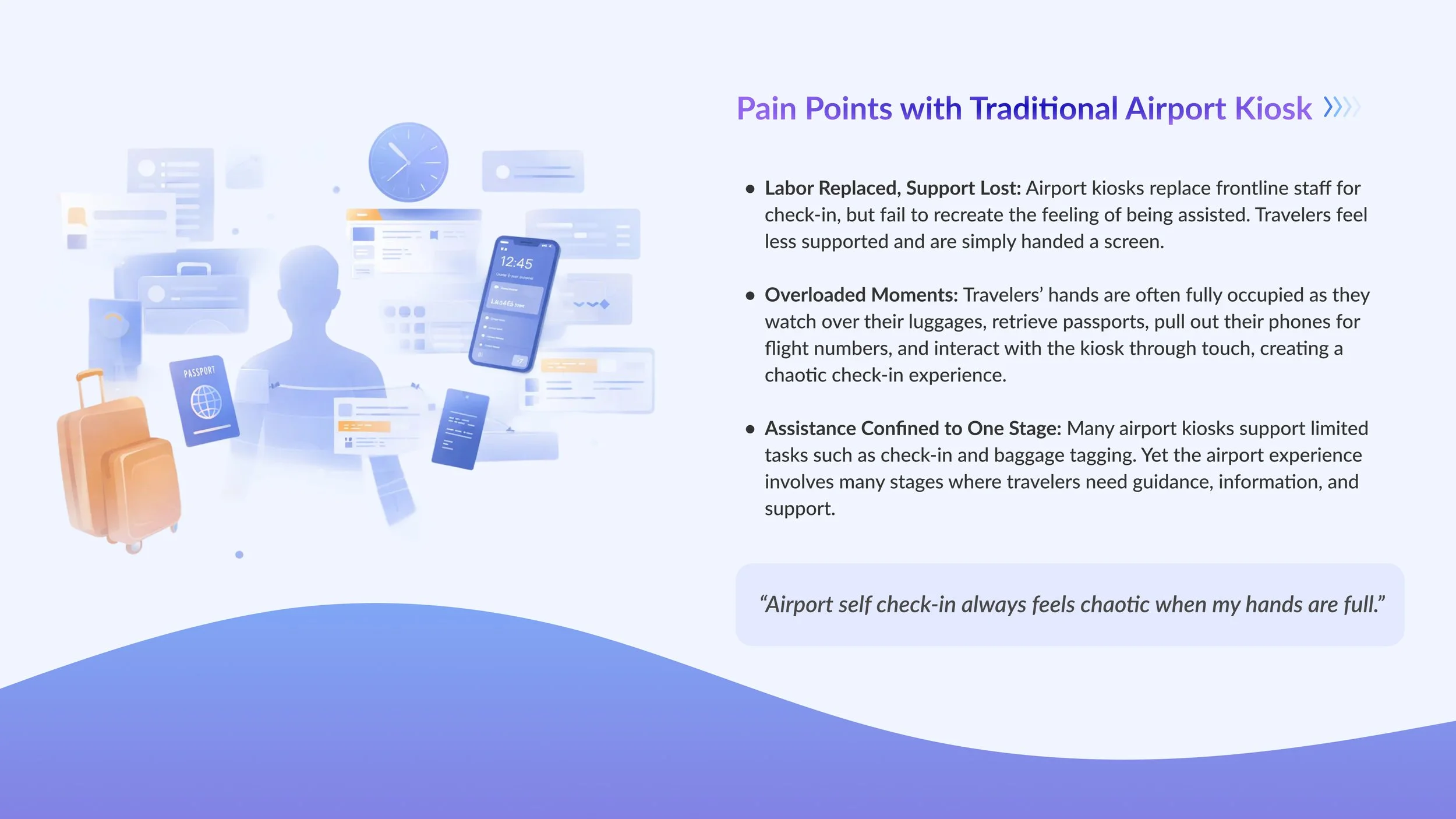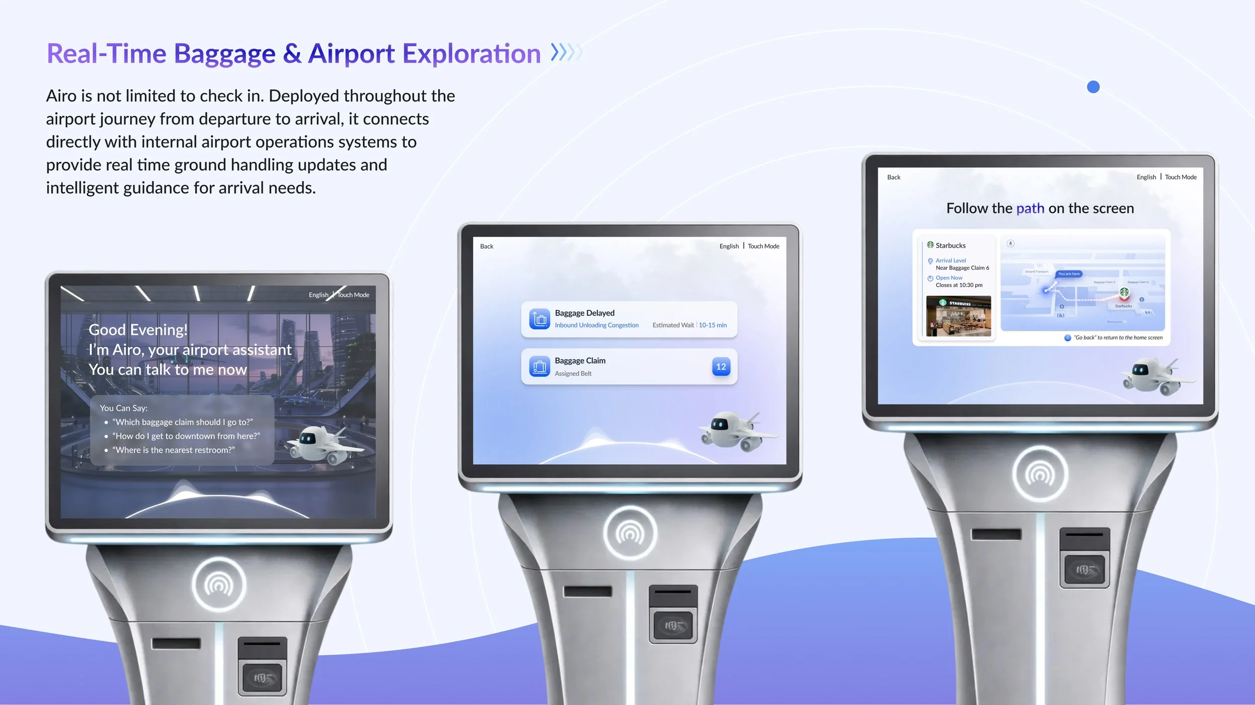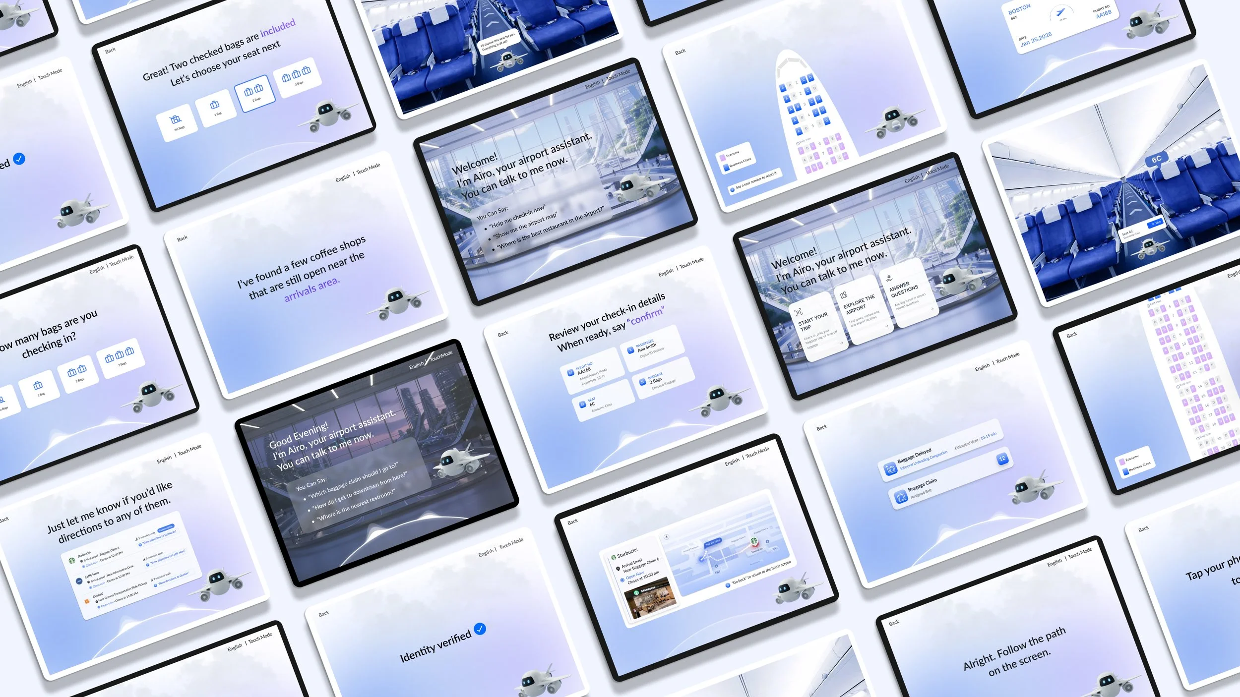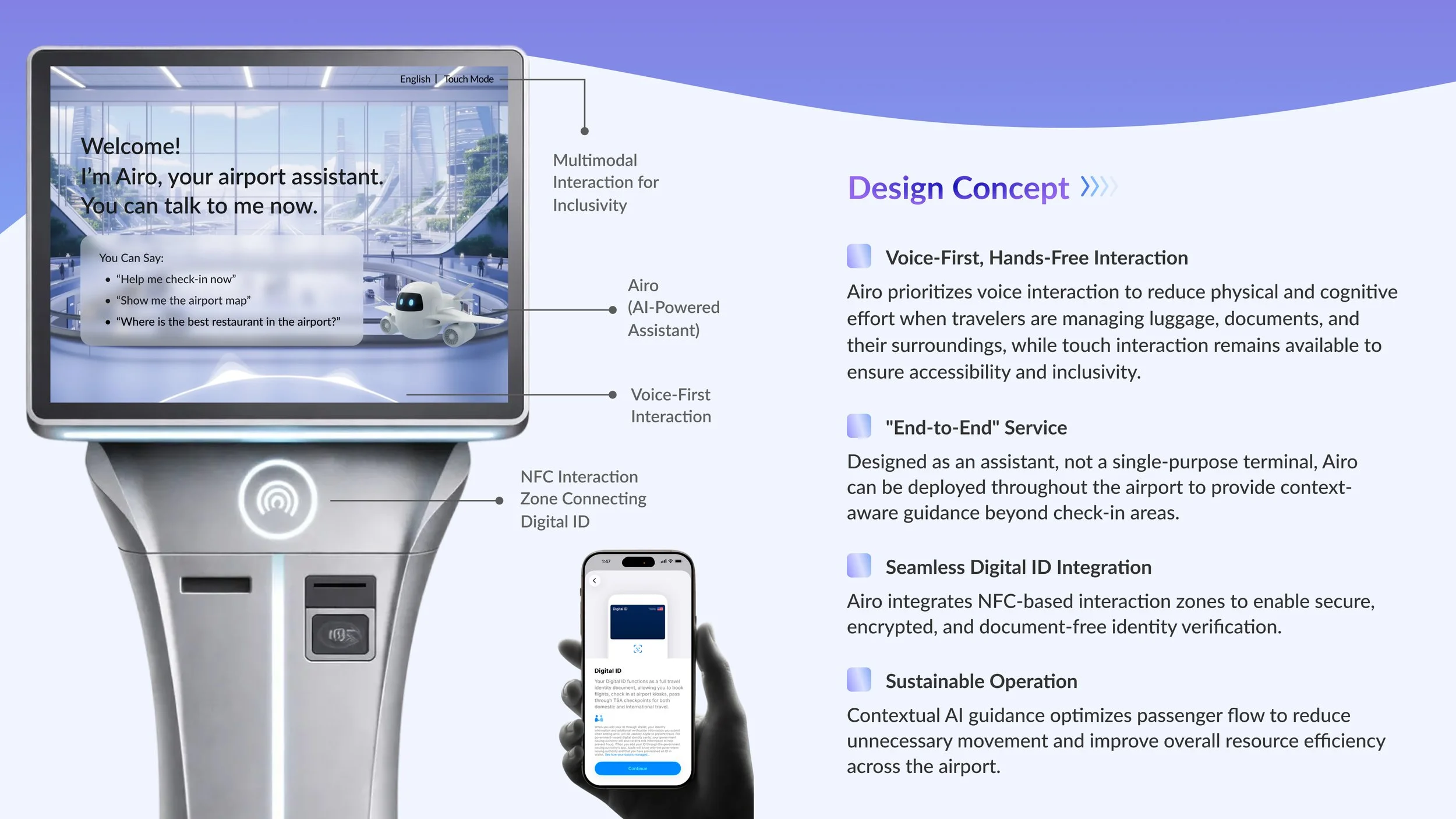 Airo is a voice-first, AI-powered airport kiosk that brings warm, human-centered assistance back to self-service travel.